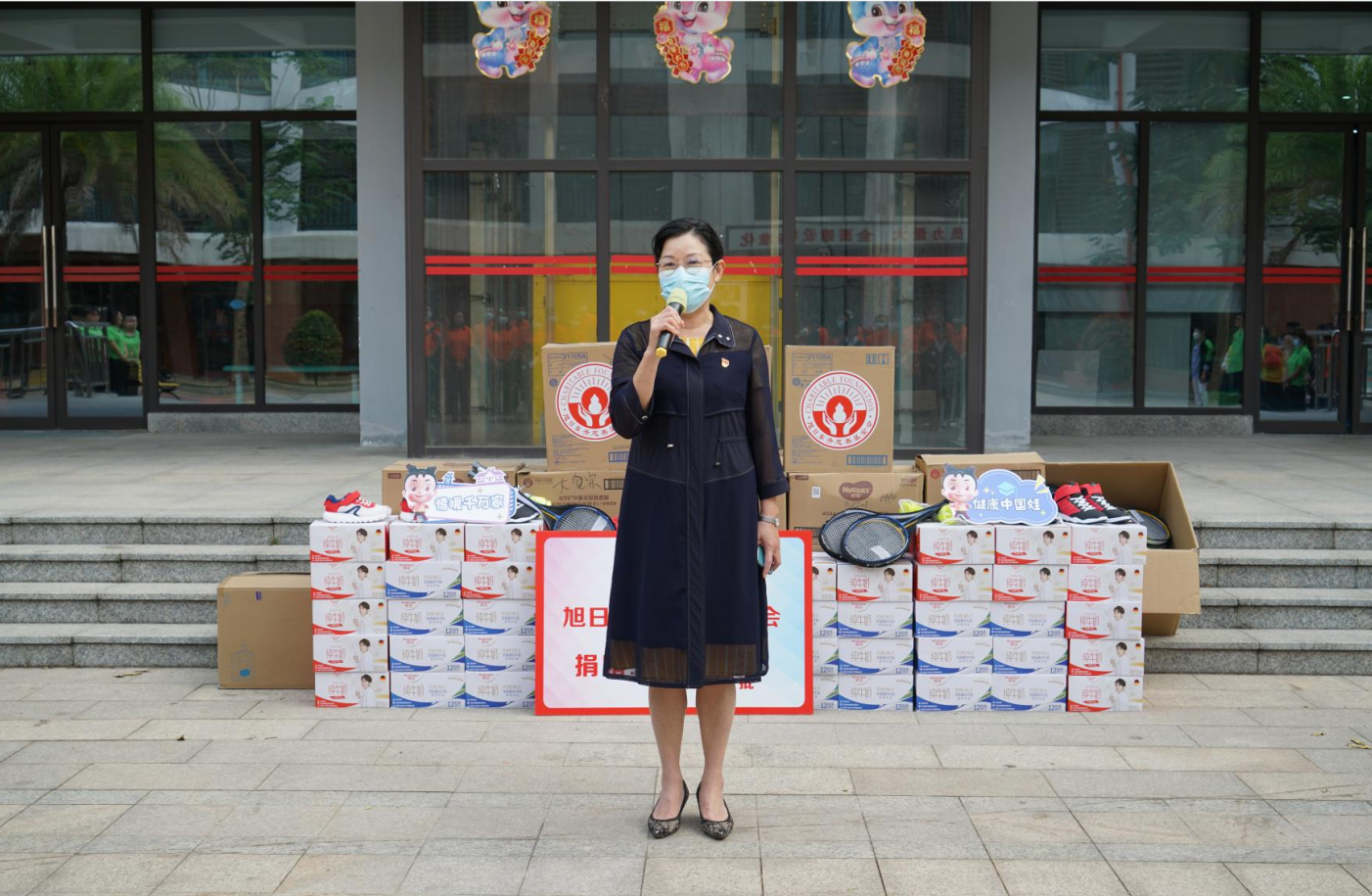 紧接着,海口市社会福利院院长唐凤英致辞。她首先感谢葫芦娃药业集团、旭日东升慈善基金会7年来,对海口市社会福利院的持续关注和无私帮助。她特别提到,2022年由葫芦娃药业集团捐资建设的“爱·护”项目医护隔离观察区,帮助福利院的孩子们渡过了疫情防控的难关。今年,熟悉的葫芦娃人又来到了福利院陪伴孩子们,给予了这里的小朋友们爱的力量。