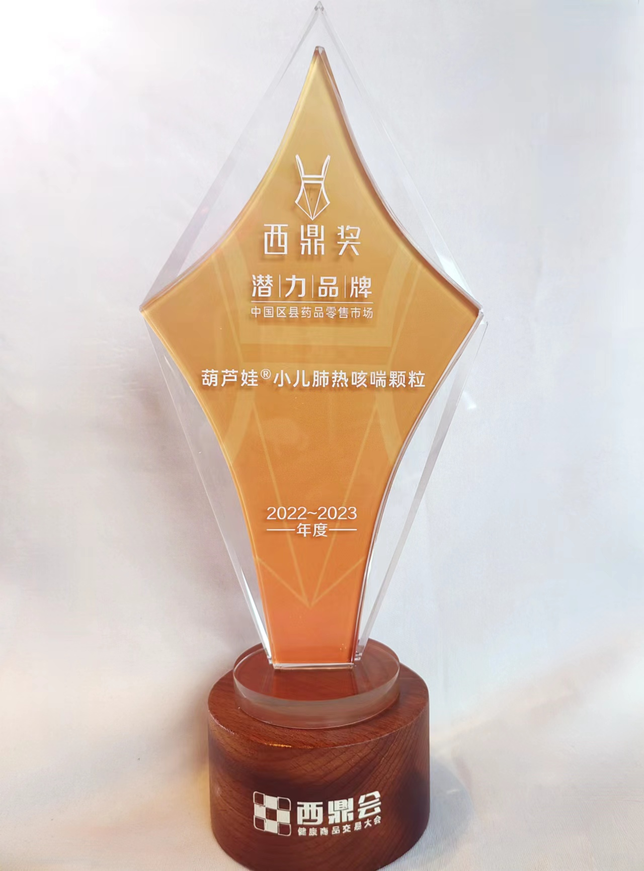 3月18日晚,2022-2023西鼎奖·品牌评选结果在西鼎会“播种·品牌聚势”晚宴上揭晓。葫芦娃牌小儿肺热咳喘颗粒(4g)凭借过硬的产品质量、良好口碑与不断扩大的品牌影响力脱颖而出,荣获“2022-2023年度中国区县药品零售市场潜力品牌”。